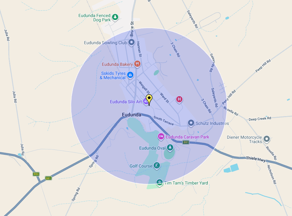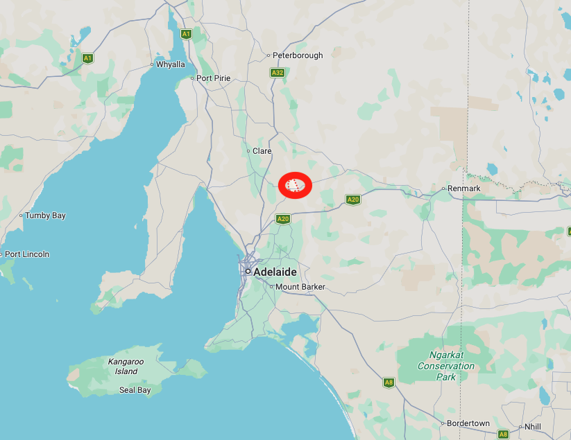 Above: Map showing the location of Eudunda. Map c/o Google Maps