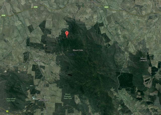 Above:- Map showing the location of the summit, west of Lorne. Image courtesy of google maps.