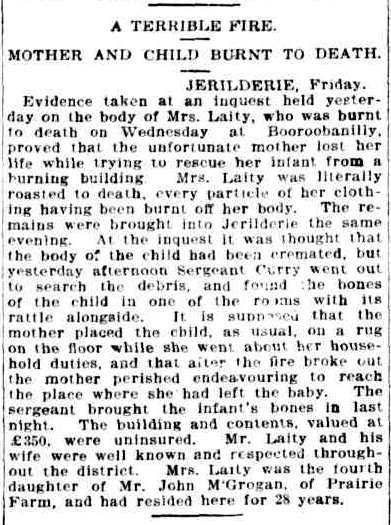 Above: article from The Berrigan Advocate, Fri 6 Mar 1903. Image c/o Trove