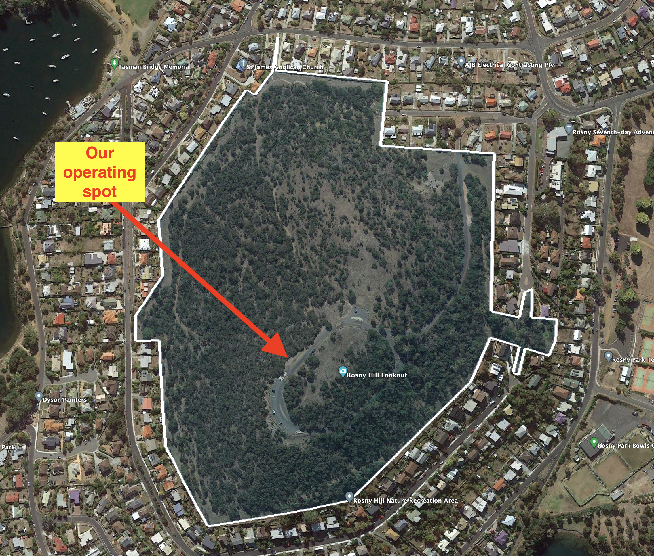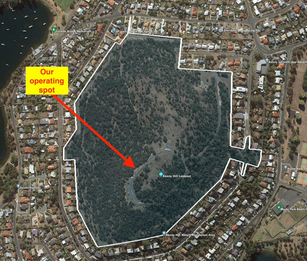 After packing up at East Risdon State Reserve (9th November 2022) we headed to our second park for the day, the Rosny Hill Nature Reserve VKFF-2928.