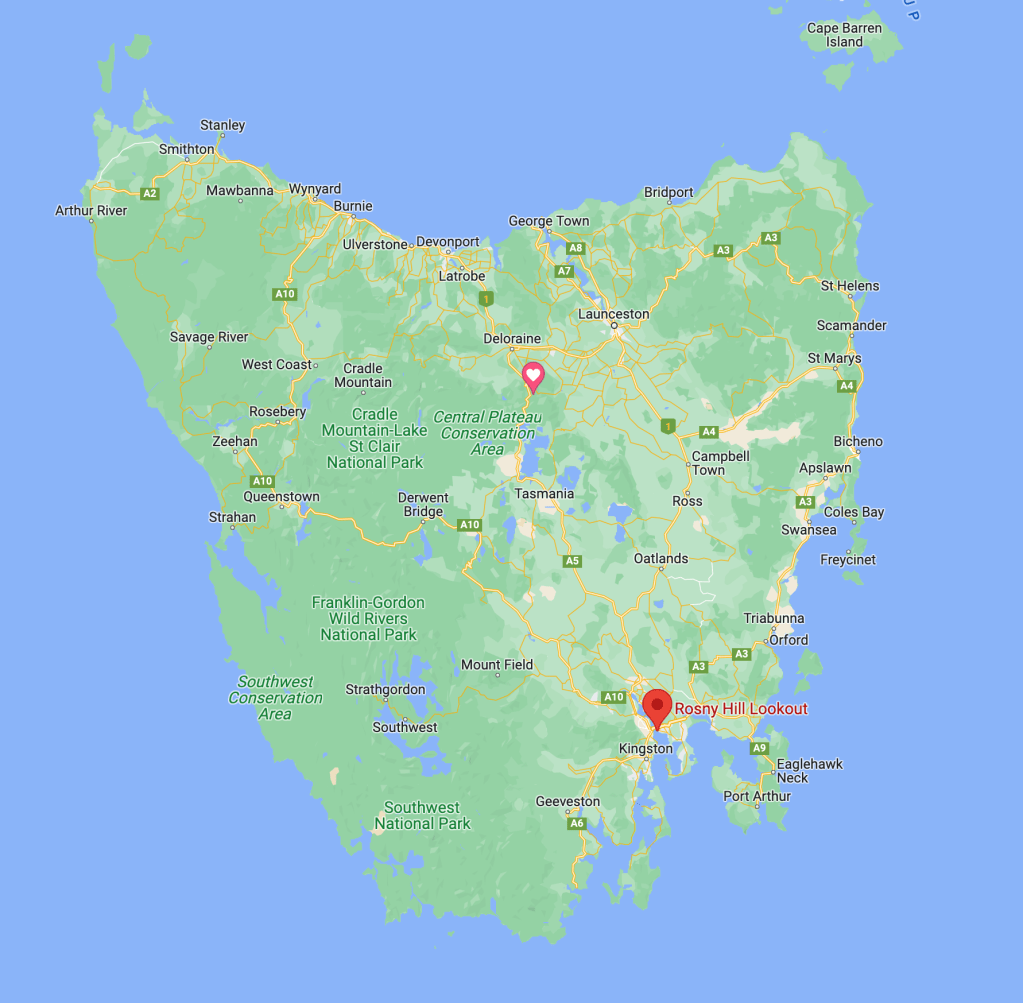 Above:- Map showing the location of the Rosny Hill Nature Reserve. Map c/o Google maps