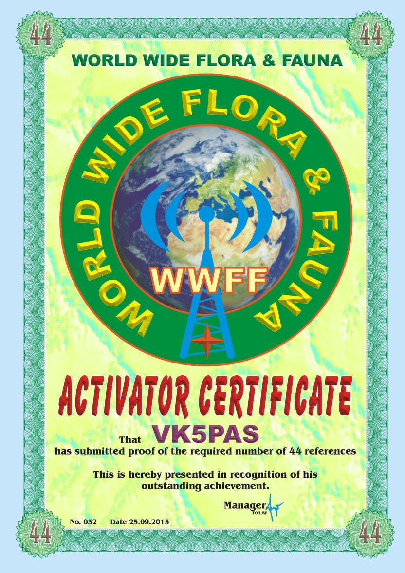 WWFF CERTIFICATES