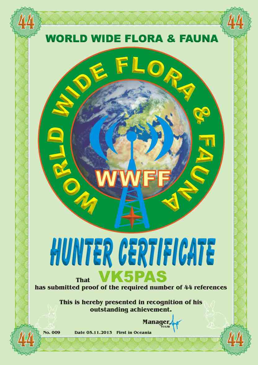 WWFF CERTIFICATES