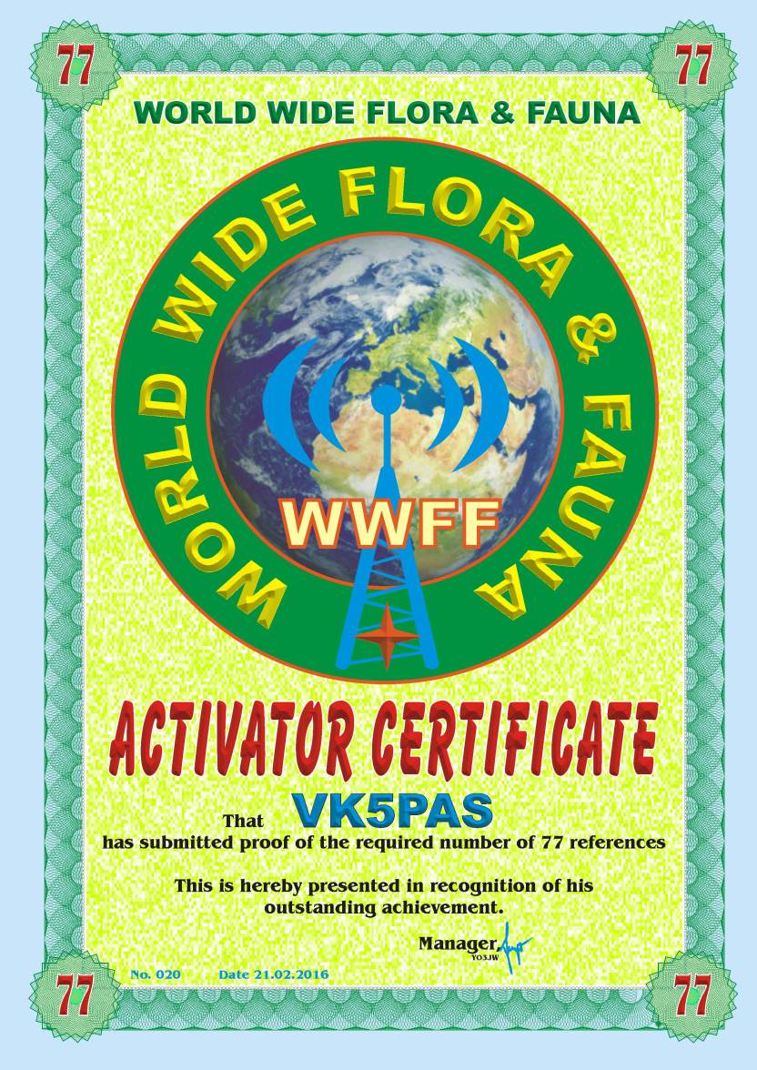 WWFF CERTIFICATES