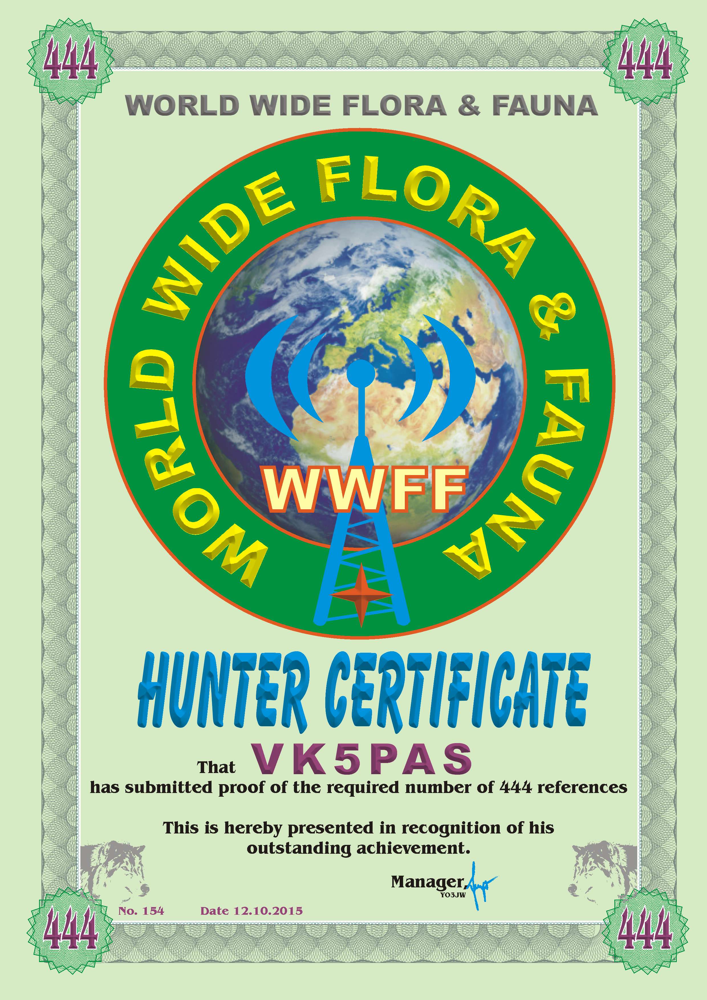 WWFF CERTIFICATES