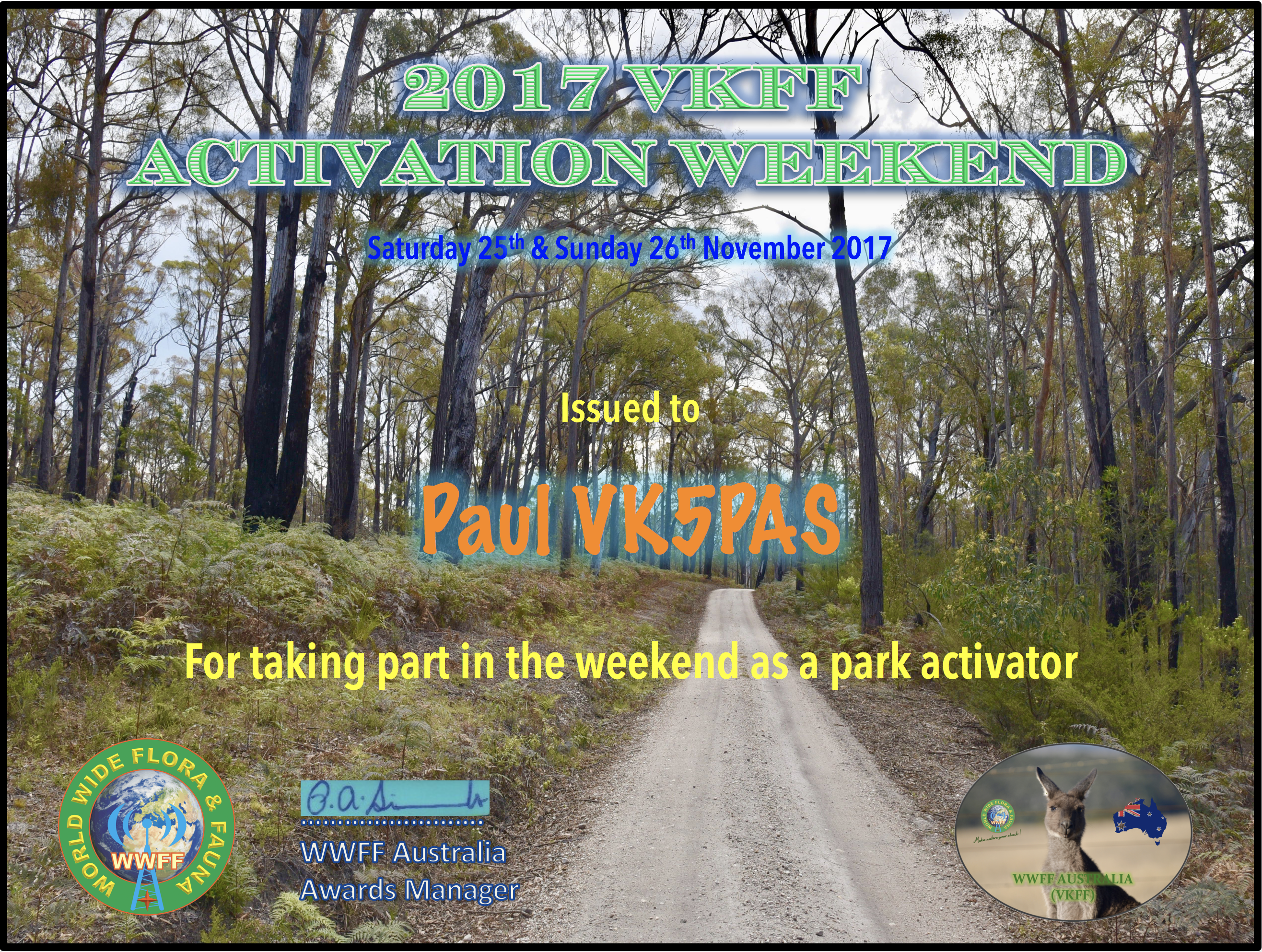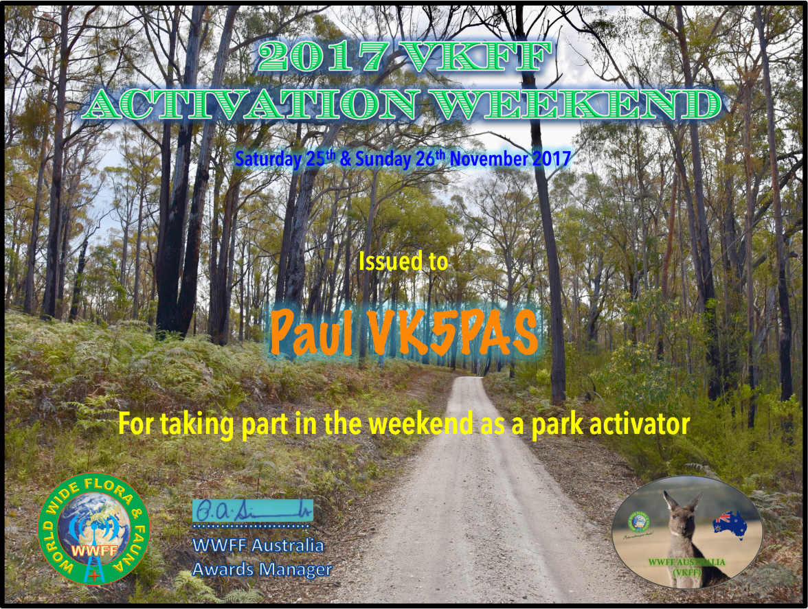 VK5PAS Published January 9, 2018 at 2632 × 1986 in WWFF CERTIFICATES ← Previous Next → 2017 VKFF Activation Weekend Like Loading...