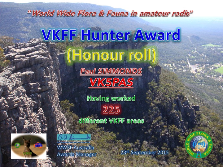 VK5PAS Honour Roll Hunter 225 Published July 25, 2016 at 720 × 540 in WWFF CERTIFICATES ← Previous Next → Honour Roll 225 Like Loading...