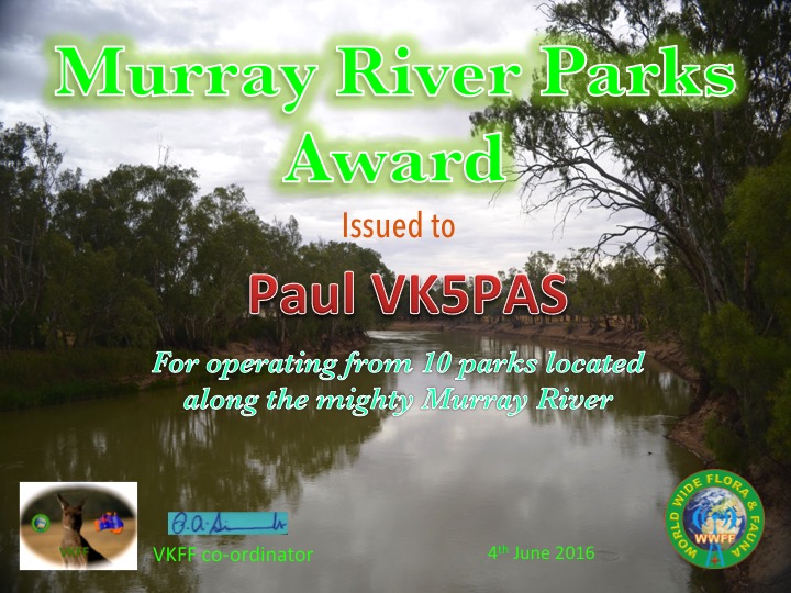 VK5PAS Murray River Parks Activator 10 Published June 27, 2017 at 720 × 540 in WWFF CERTIFICATES ← Previous Next → Like Loading...