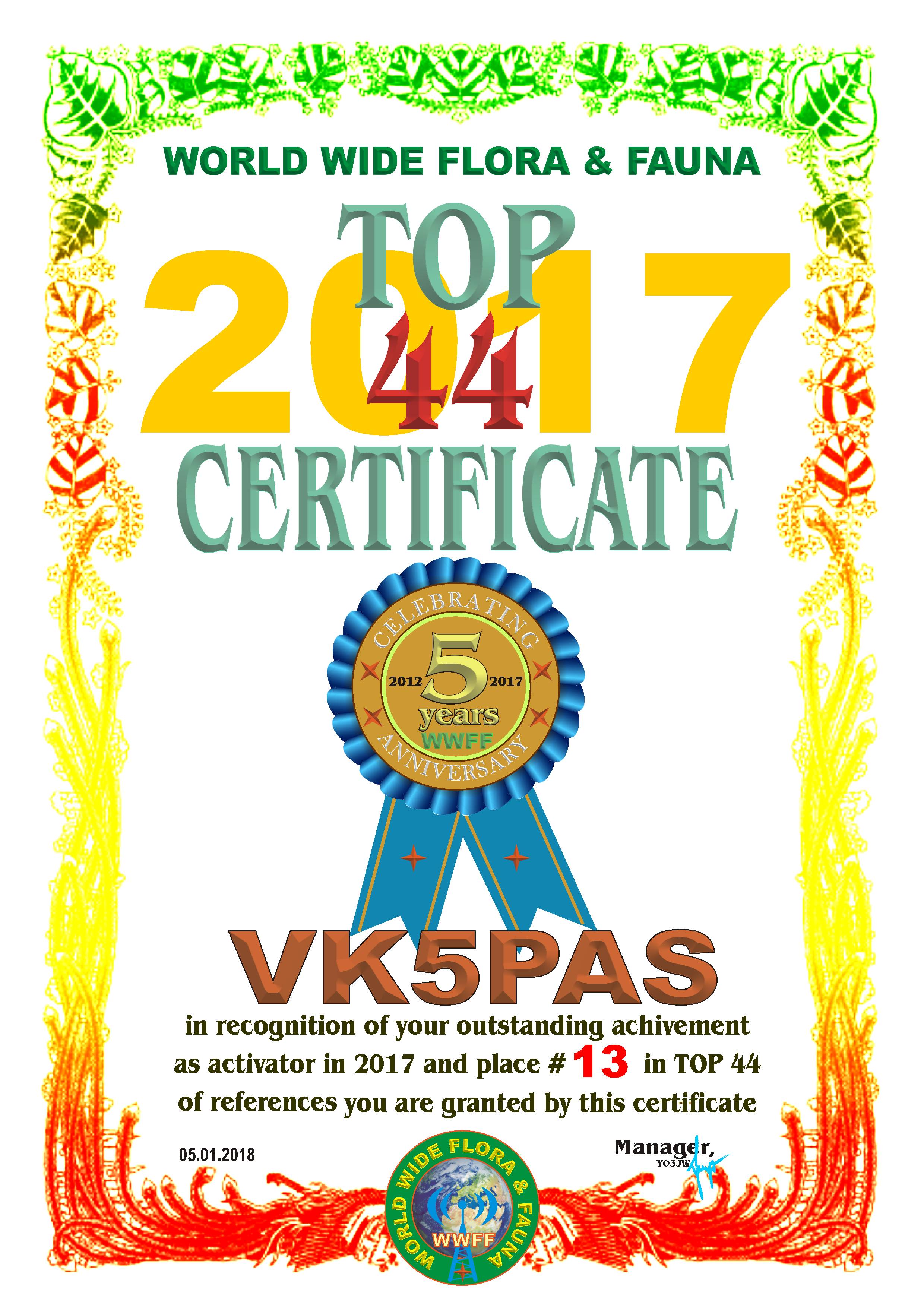 VK5PAS TOP 44 2017 REFERENCES Published January 9, 2018 at 2480 × 3516 in WWFF CERTIFICATES ← Previous Next → Like Loading...