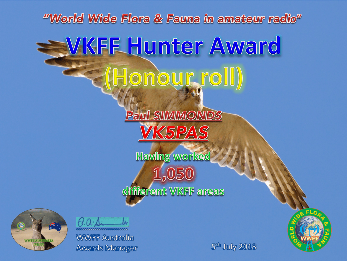 VK5PAS VKFF Hunter Honour Roll 1,050 Published August 2, 2018 at 2593 × 1951 in WWFF CERTIFICATES ← Previous Next → Like Loading...