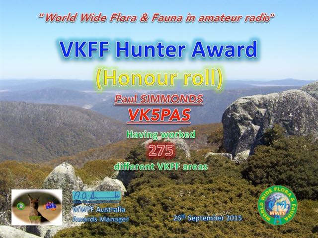 VK5PAS VKFF Hunter Honour Roll 275 Published July 25, 2016 at 640 × 480 in WWFF CERTIFICATES ← Previous Next → Honour Roll 275 Like Loading...