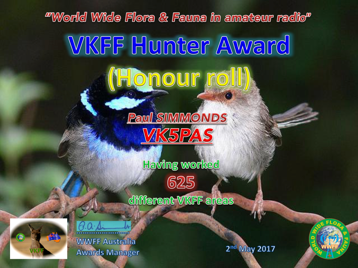 VK5PAS VKFF Hunter Honour Roll 625 Published August 2, 2018 at 2817 × 2113 in WWFF CERTIFICATES ← Previous Next → Like Loading...