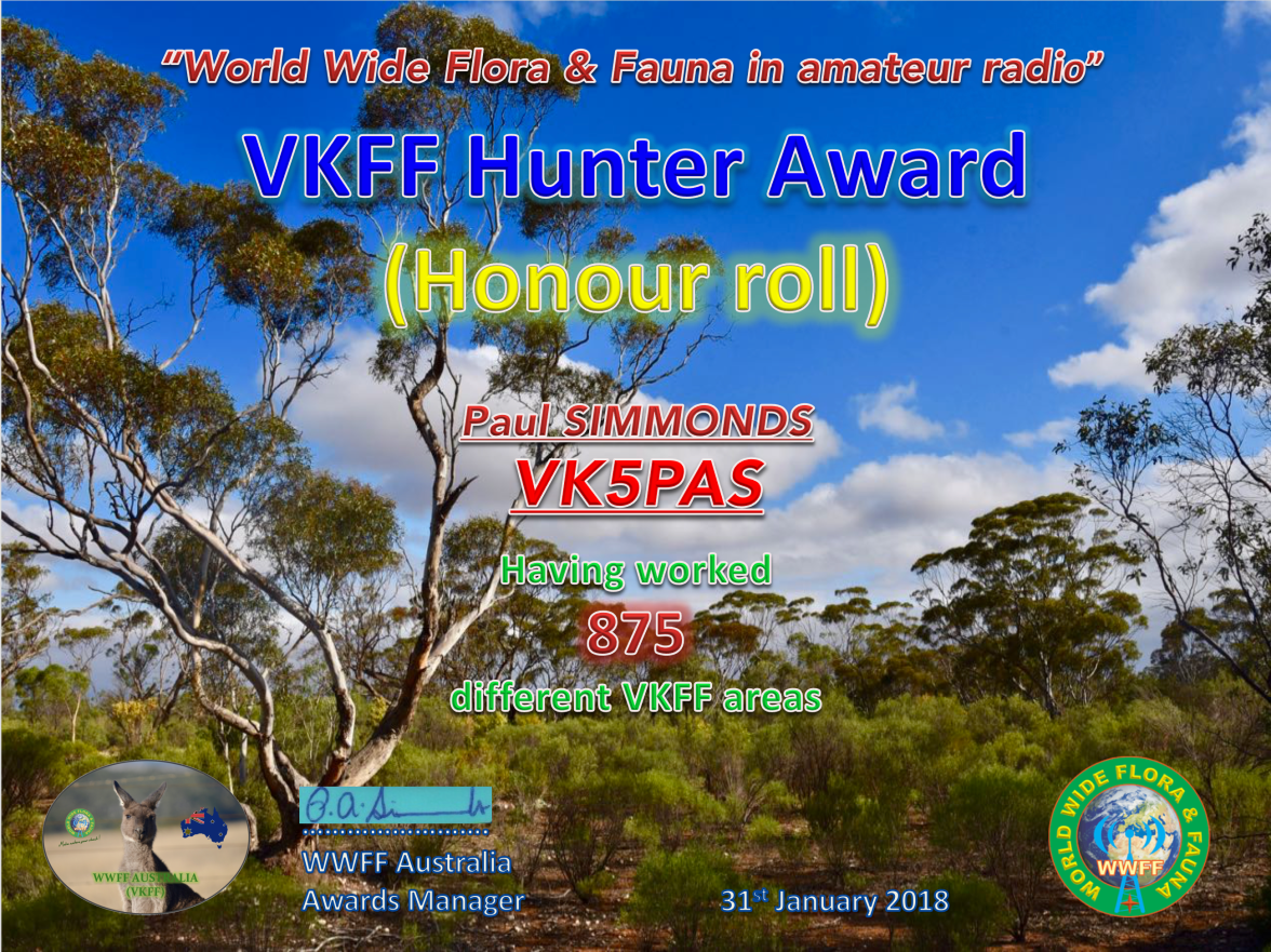 VK5PAS VKFF Hunter Honour Roll 875 Published August 2, 2018 at 2602 × 1950 in WWFF CERTIFICATES ← Previous Next → Like Loading...