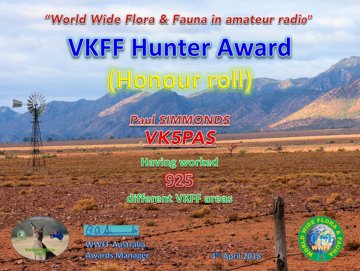 VK5PAS VKFF Hunter Honour Roll 925 Published April 12, 2018 at 2591 × 1949 in WWFF CERTIFICATES ← Previous Next → Honour Roll 925 Like Loading...