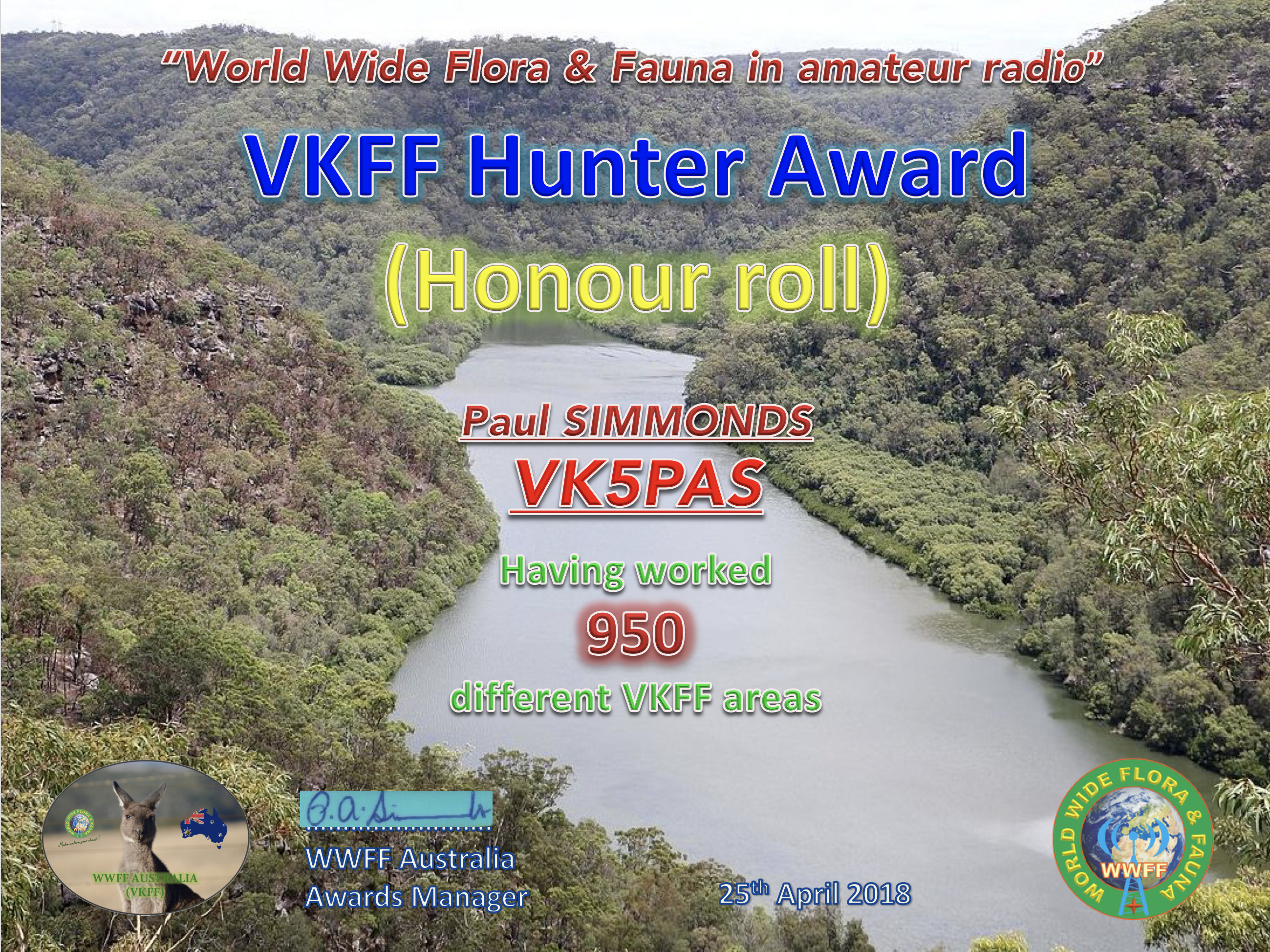 VK5PAS VKFF Hunter Honour Roll 950 Published August 2, 2018 at 2599 × 1948 in WWFF CERTIFICATES ← Previous Next → Like Loading...